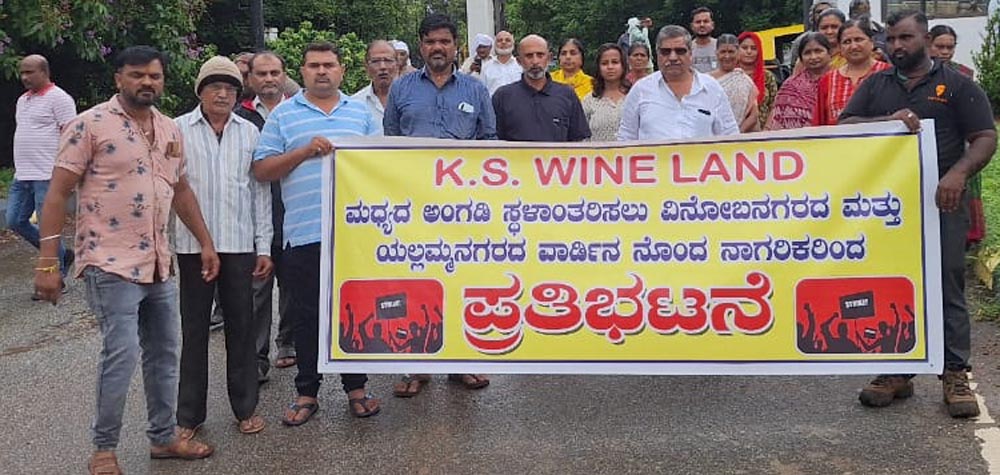 ದಾವಣಗೆರೆ: ಇಲ್ಲಿನ ವಿನೋಬಾ ನಗರದ 4ನೇ ಮುಖ್ಯ ರಸ್ಥೆಯಲ್ಲಿರುವ ಕೆ.ಎಸ್.ವೈನ್ ಲ್ಯಾಂಡ್ ಮದ್ಯಪಾನ ಅಂಗಡಿ ತೆರವಿಗೆ ಒತ್ತಾಯಿಸಿ ಅಲ್ಲಿನ ನಿವಾಸಿಗಳು ಪ್ರತಿಭಟನೆ